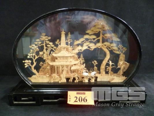 GOOD SIZE ORIENTAL CORK DIORAMA, 32 x 22cm