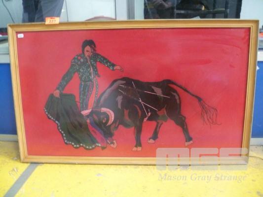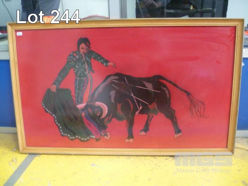 VINTAGE MID CENTURY DANISH EMAS ERA WALL ART, MATADOR, 108 x 67cm (H)