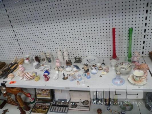 ASSORTED BRIC A BRAC, COLLECTABLES, SALT & PEPPER SHAKERS, ART GLASS, LIMOGES, SNOOPY PLATE, ETC