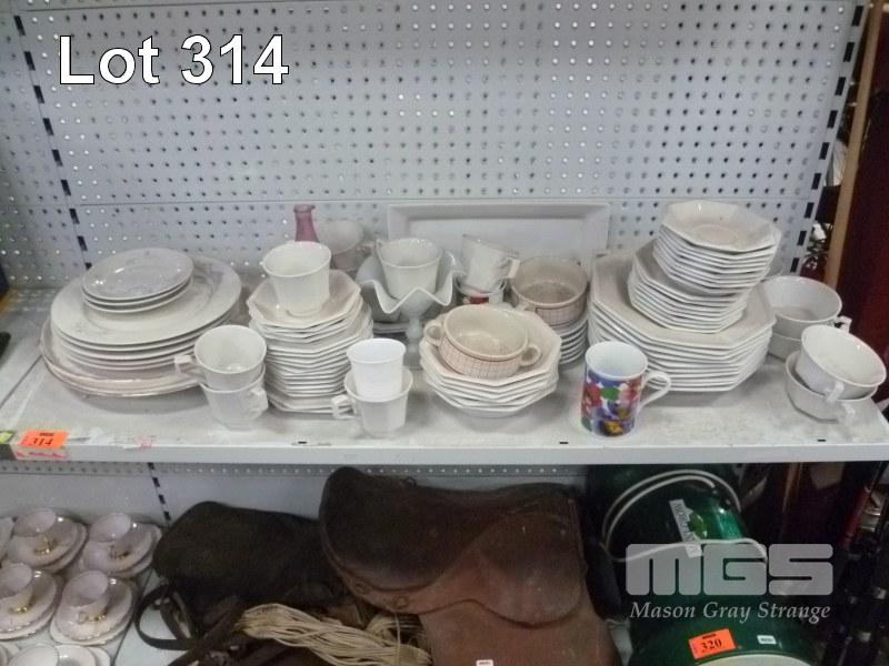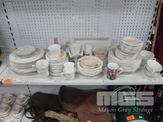ASSORTED WHITE CERAMIC WARE, DINNERWARE, PLATTER PLATES ETC