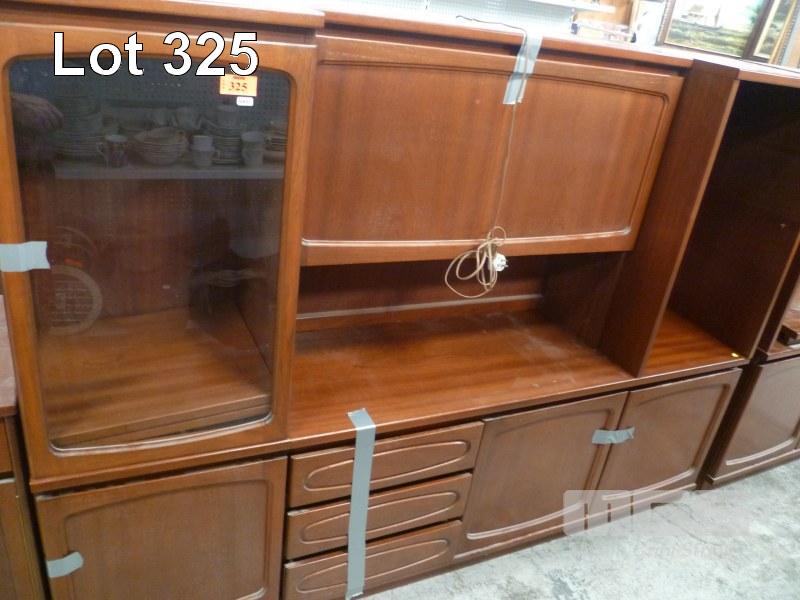 NOBLETT FURNITURE NORDIC WALL UNIT, INC GLASS FRONTED SINGLE DOOR SIDE CABINET, SIDE SHELF UNIT, COCKTAIL CABINET CENTRE & 3 DOOR/DRAWER UNDERSTORAGE