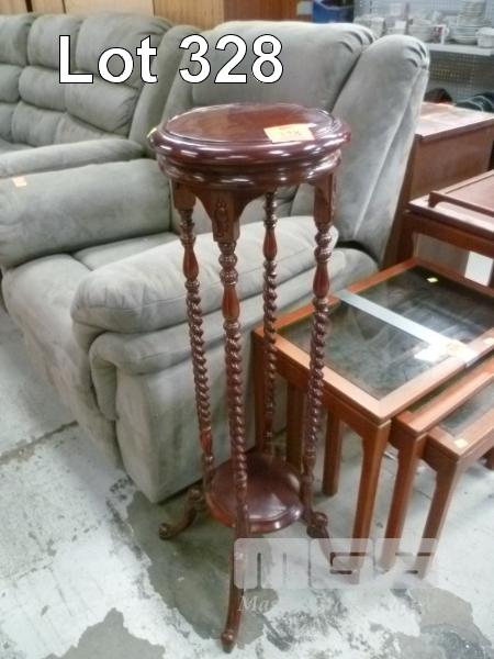 STAINED MAHOGANY BARLEY TWIST PLANTER PEDESTAL
