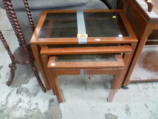 NOBLETT FURNITURE NEST 3 GLASS TOPPED COFFEE/SIDE TABLES