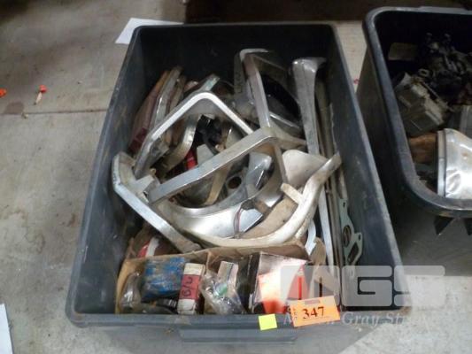 ASSORTED EARLY AUTOMOTIVE PARTS, HEADLIGHT SURROUNDS, ETC (1 X TUB)