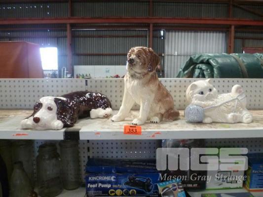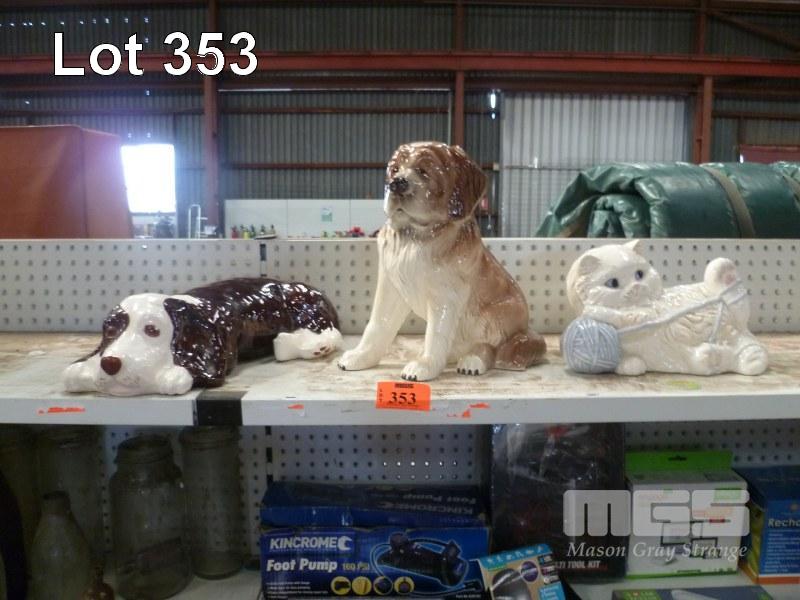 3 x CERAMIC DOG & CATS, VARIOUS SIZES