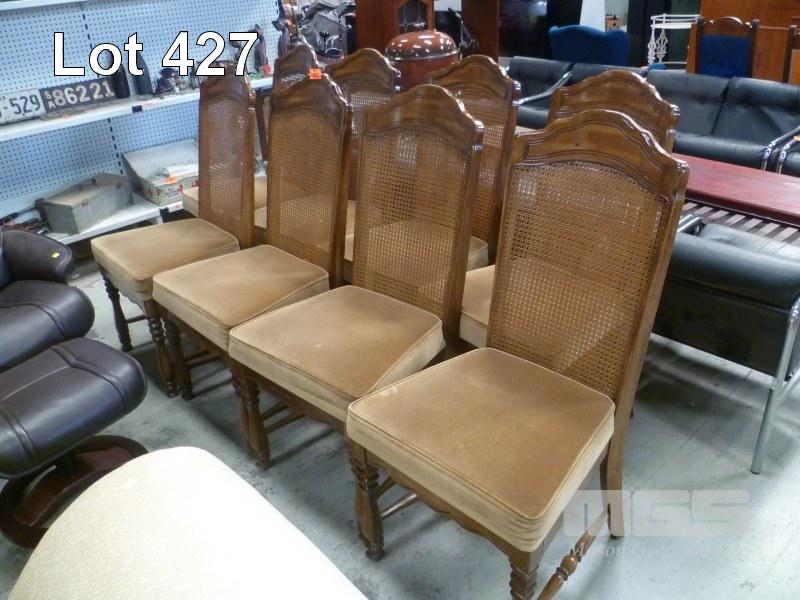 SET OF 8 DINING CHAIRS, BROWN VELVET UPHOLSTERED SEAT & RATTAN BACKING