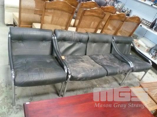 BLACK LEATHER, CHROME FRAME 3 PIECE LOUNGE SUITE INC 2 SEATER & 2 x SINGLE SEATERS
