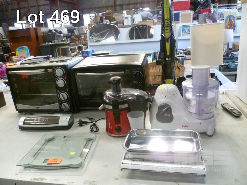 COOKWELL BENCHTOP OVEN/HOT PLATE WITH BENCHTOP OVEN/GRILL, HOMEWARE JUICER, BELLE FOOD PROCESSOR, LG RECHARGEABLE VACUUM CLEANER, ASSORTED SCALES, SEALER, ETC