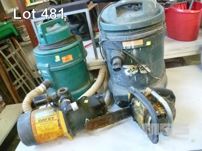VAX & METABO VACUUMS, DAVEY ELECTRIC WATER PUMP & MCCULLOCH PETROL CHAINSAW, 10" BAR