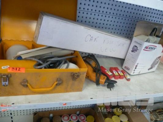 ELECTRIC SPRAY GUN SET, ICON JIGSAW, BLACK & DECKER DRILL & ROOF RACK