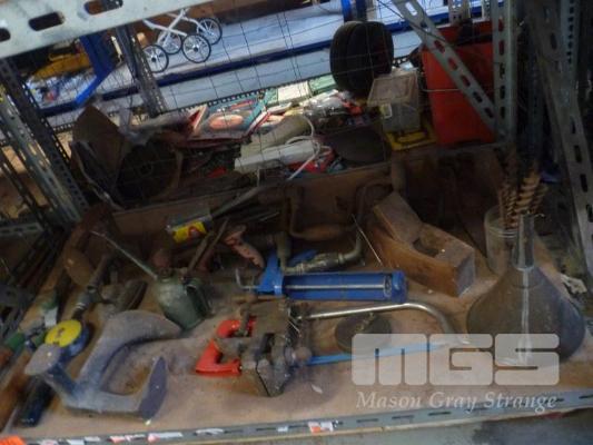 ASSORTED HAND TOOLS, BOOT LASTS, VINTAGE VICE ETC 1 X BAT