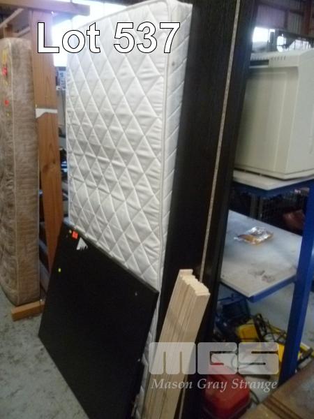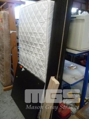 BLACK TIMBER SINGLE BED & MATTRESS, TIMBER SLAT