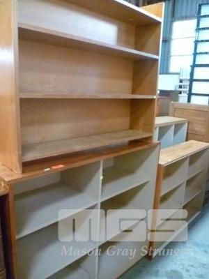 3 x SHELF UNITS, ASSORTED SIZES, PAINTED & STAINED PINE, 900 x 1200mm, 1070 x 1200mm & PIGEON HOLE SHELF UNIT, TIMBER LAMINATE, 1150 x 1120mm, 9 HOLE