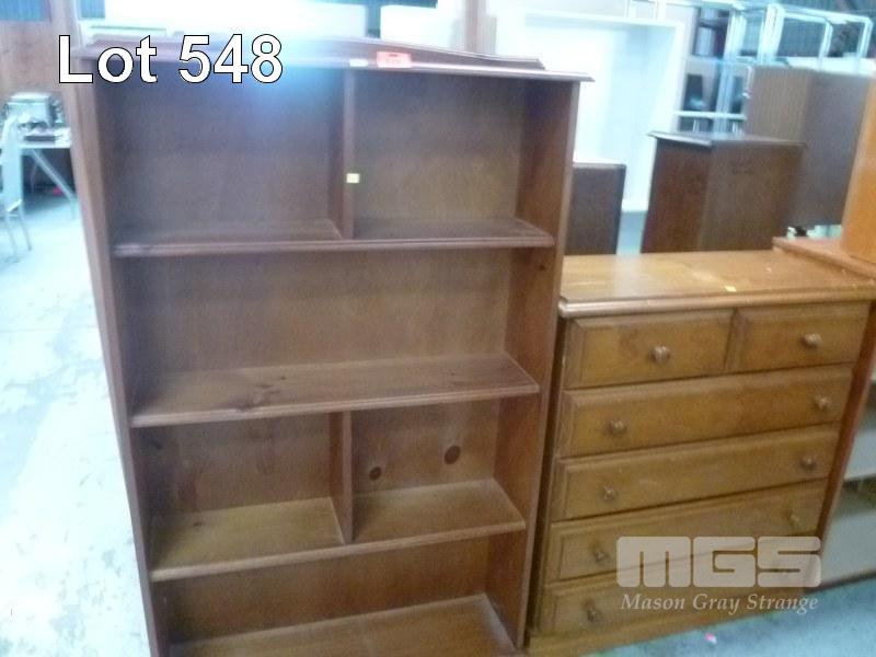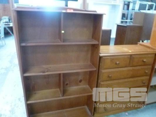SHELF UNIT, STAINED PINE, 4 TIER, 1530 x 950mm WITH 6 DRAWER CHEST, STAINED PINE FINISH, 1050 x 950mm