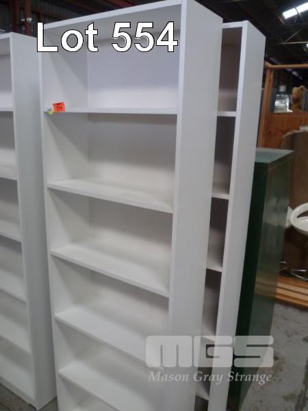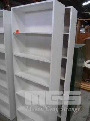 PAIR WHITE LAMINATE BOOKCASES, 6 TIER, 60 x 179cm