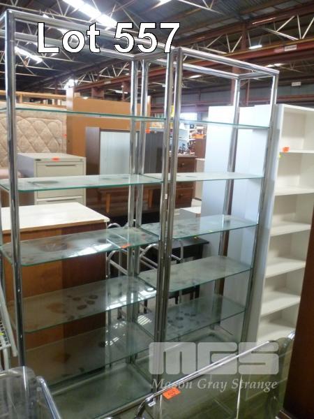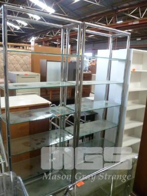 PAIR SHELF UNITS, CHROME FRAME, GLASS SHELVES, 79 x 199cm
