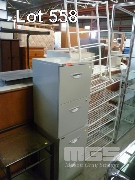 PAIR GREY METAL 2 DRAWER FILING CABINETS, SIDE TABLE, GLASS TOP & 3 x SHOE RACKS