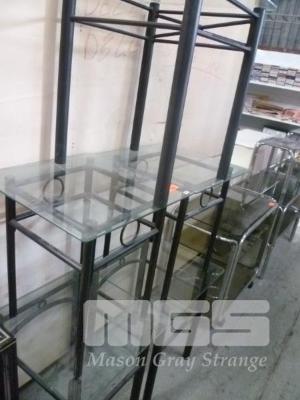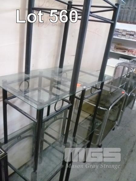 5 x SIDE TABLES, BLACK METAL FRAME, GLASS TOP