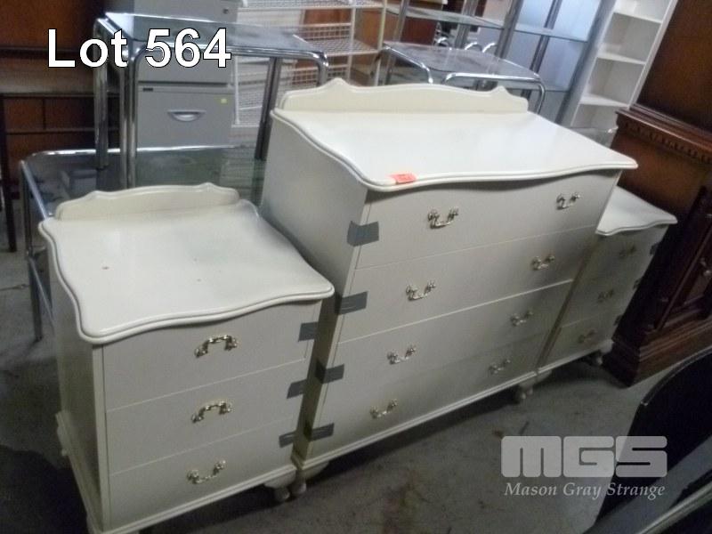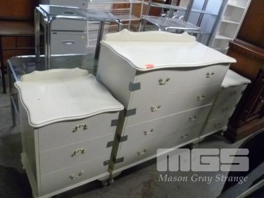 QUEEN ANNE STYLE BEDROOM SUITE, 4 DRAWER DRESSER & 2 X 3 DRAWER BEDSIDE CABINETS