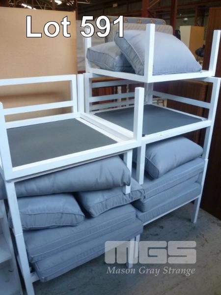 WHITE ALUMINIUM FRAME OUTDOOR MODULAR LOUNGE, 6 x MODULES, GREY ACRYLIC CUSHIONS