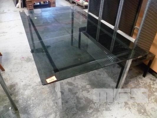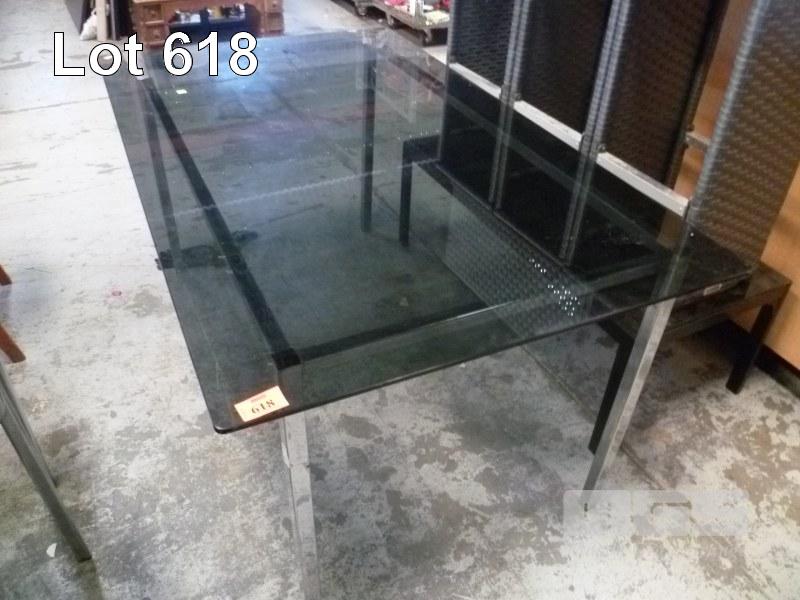 CHROME FRAME, RECTANGULAR SMOKEY GLASS TOP DINING TABLE