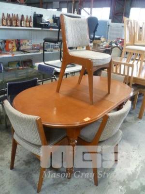 DINING SUITE, 5 PIECE, OVAL EXTENSION DINING TABLE & 4 x MID CENTURY CHAIRS