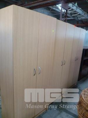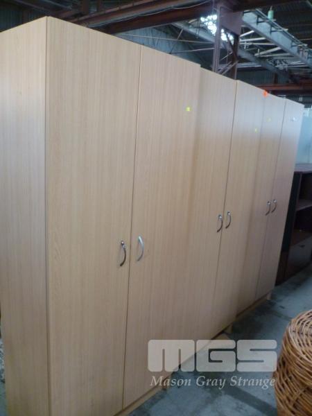 PAIR OF TIMBER LAMINATE WARDROBES WITH MATCHING LINEN PRESS