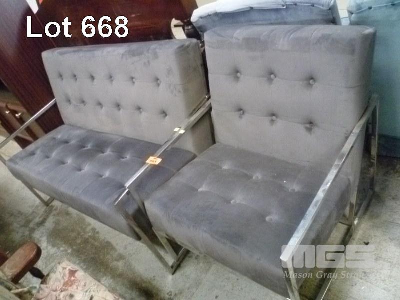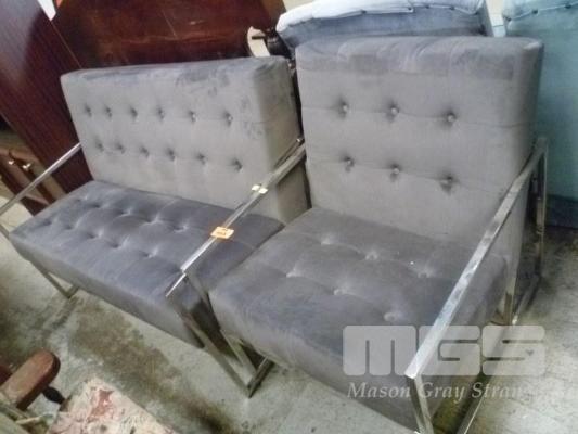 CHROME FRAMED GREY FABRIC UPHOLSTERED 2 PIECE LOUNGE SUITE, 2 & 3 SEATER