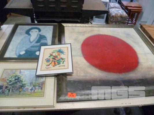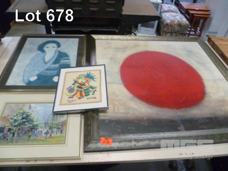 4 x ASSORTED FRAMED ART WORKS, ORIENTAL STREETSCAPE & CONTEMPORARY