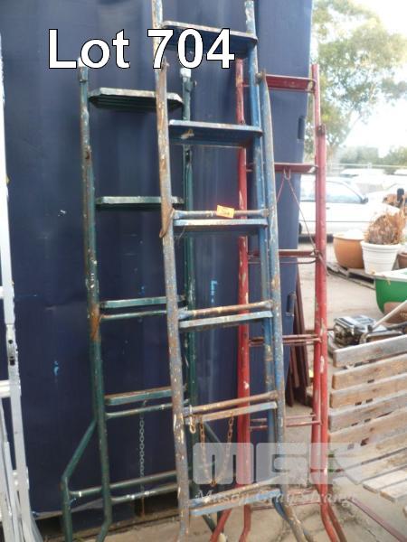 3 X VINTAGE, METAL A-FRAME LADDERS