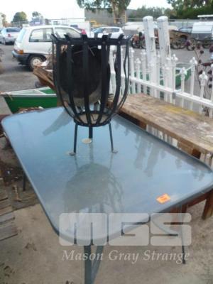 RECTANGULAR, ALUMINIUM FRAME, OUTDOOR TABLE WITH FIRE PIT