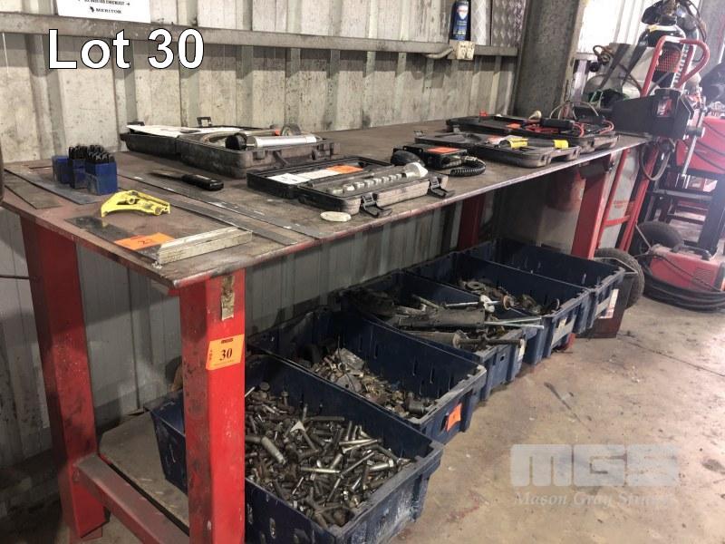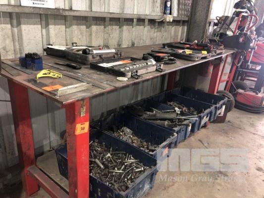 12mm PLATE TOP STEEL WORK BENCH, 2340 x735 x 950mm (H) WITH FABRICATED 6" VICE