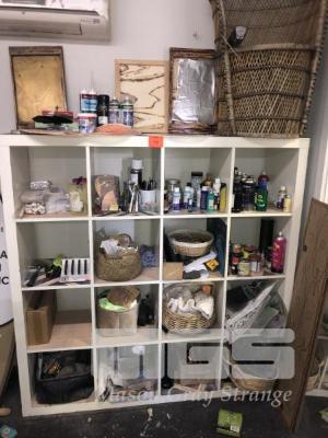 SHELF UNIT & CONTENTS INC PAINTS, ADHESIVES, SOLVENTS, TEXTILES, FABRICS, ETC WITH MIRRORS