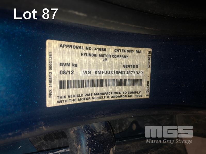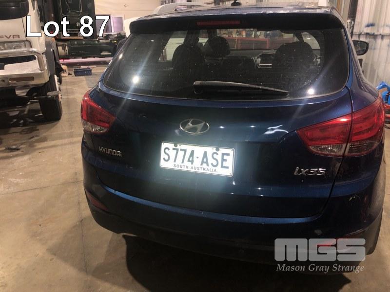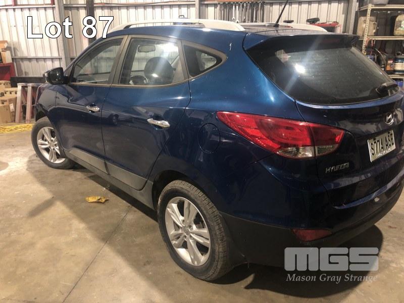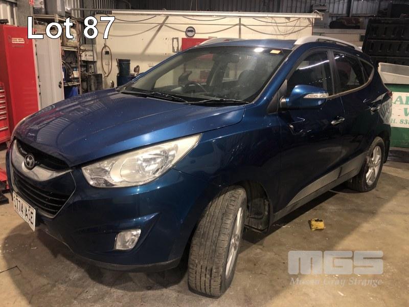 2012 HYUNDAI ix35 HATCHBACK REG: S774 ASE VIN: KMHJV81BMDU577029 ENG: 6UKDUC835138 ODO: 107,970kms SHOWING 2 LITR,E 4 CYLINDER EFI PETROL, AUTOMATIC TRANSMISSION, METALLIC BLUE DUCO, 5 SEAT, ABS, ALLOY WHEELS, BLUETOOTH, CRUISE CONTROL, SAT NAV, CLIMATE CONTROL (WITH 1 KEY/S, WITH OWNER'S MANUAL) CONDITION: - ENGINE NOISE