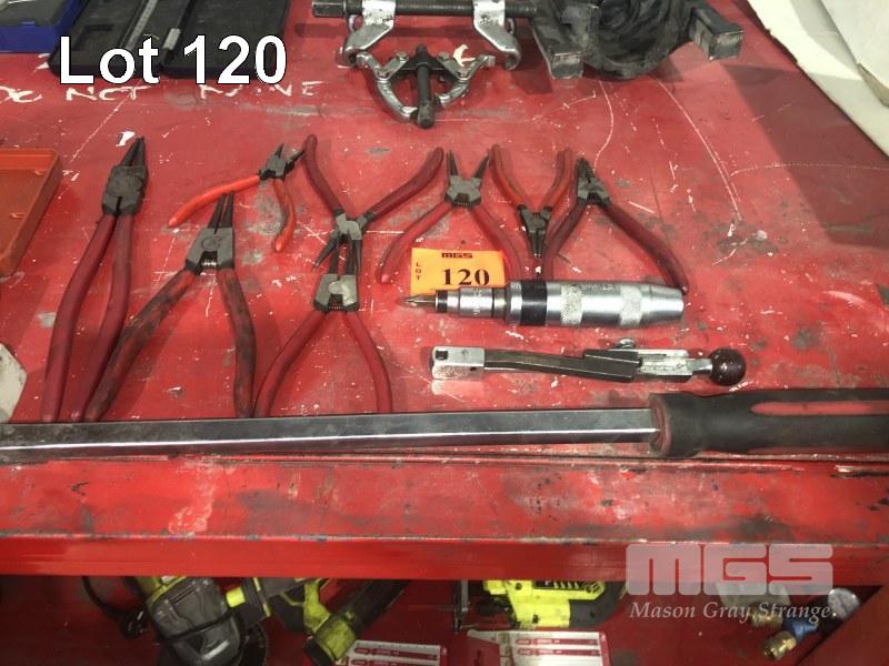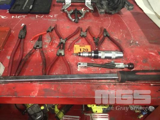8 x CIRCLIP PLIERS, IMPACT DRIVER, 1/4" DRIVE TENSION WRENCH & PRY BAR