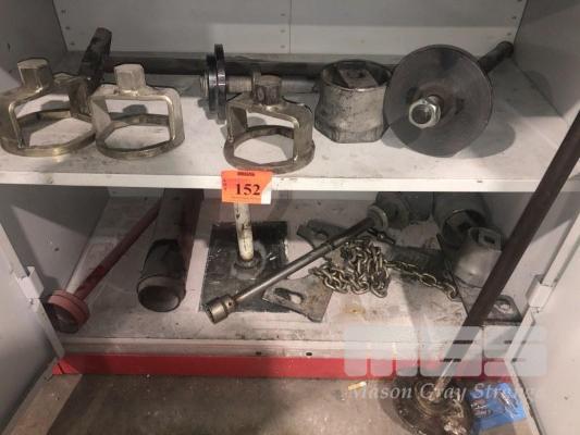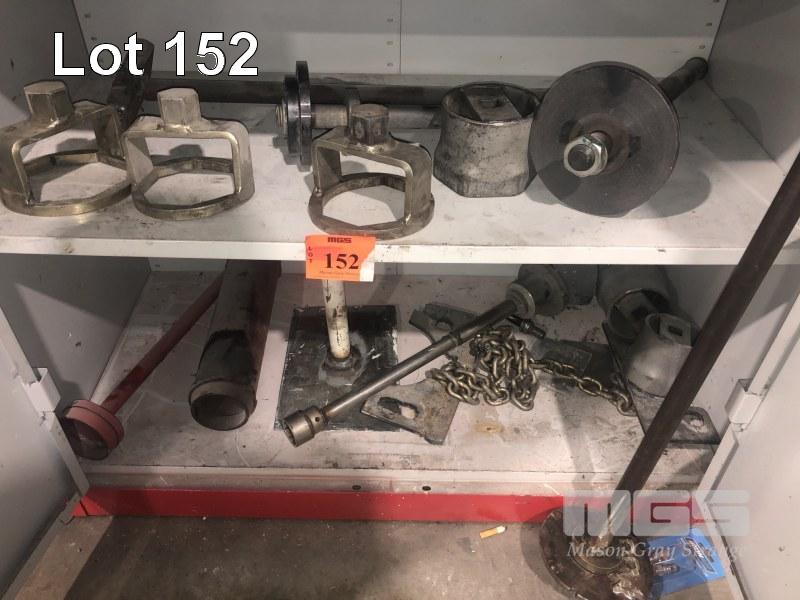 2 x SHELVES SPECIALTY TOOLS, LARGE SPANNERS, ETC