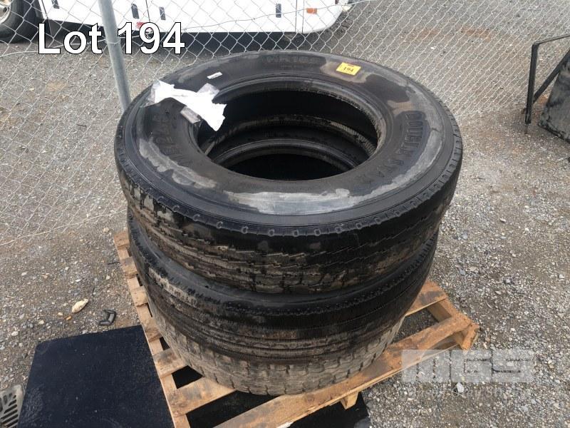 3 x TRUCK TYRES, USED, 11R22.5
