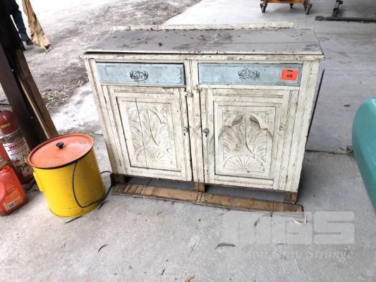 ANTIQUE SIDEBOARD CABINET, 2 x DOOR, 2 x DRAWER & FOWLER PRESERVE POT