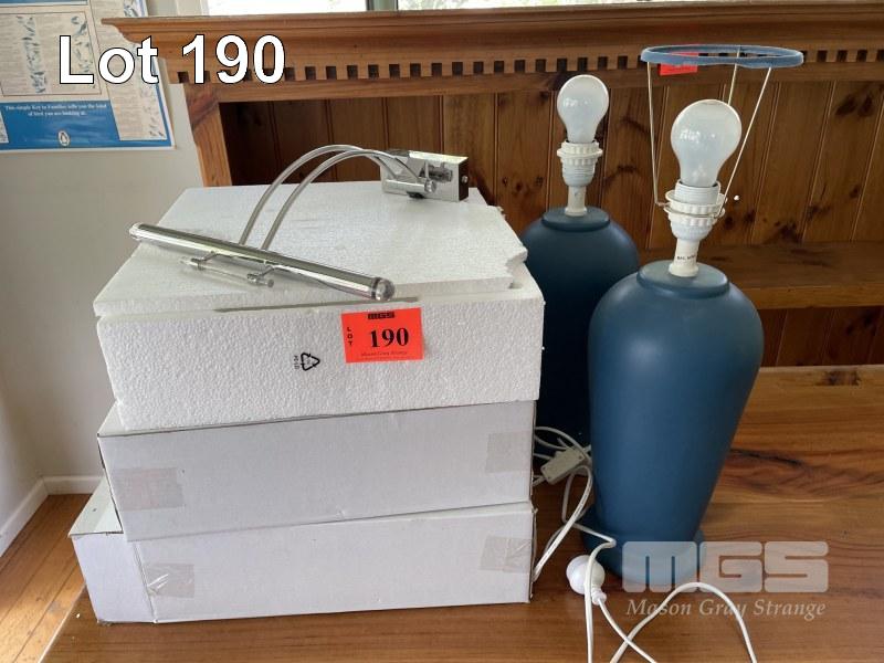 3 x DESK LAMPS, NEW, 2 x 20w & 2 x BEDSIDE LAMPS, BLUE