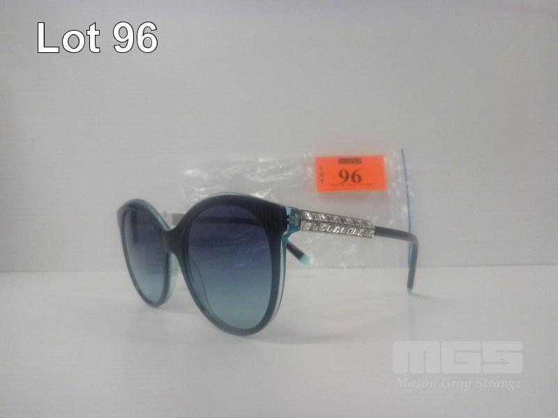 TIFFANY & CO SUNGLASSES, BLACK ON CRYSTAL TIFFANY BLUE RRP $580.00 (SLIGHT SCRATCHES ON LENS)