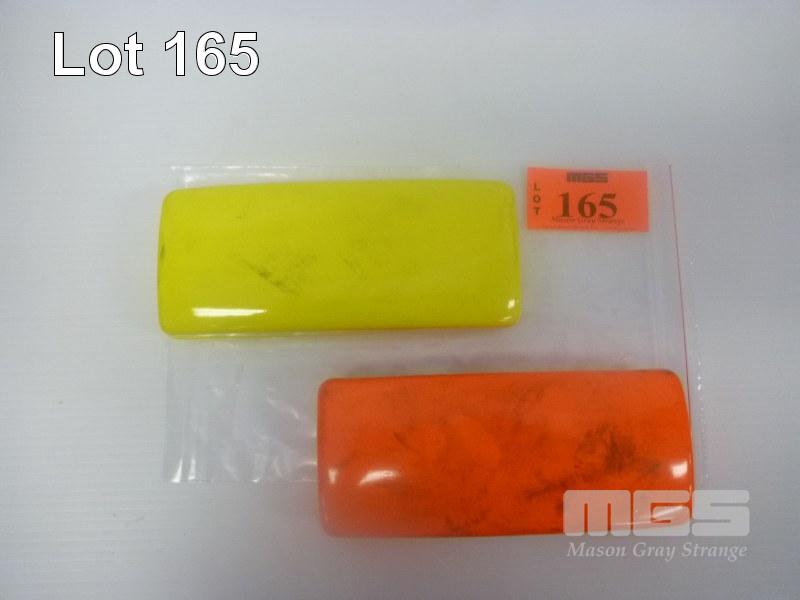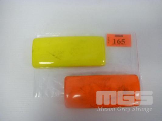 2 x GLASSES HOLDERS, FLURO ORANGE & YELLOW (BLACK MARKS)