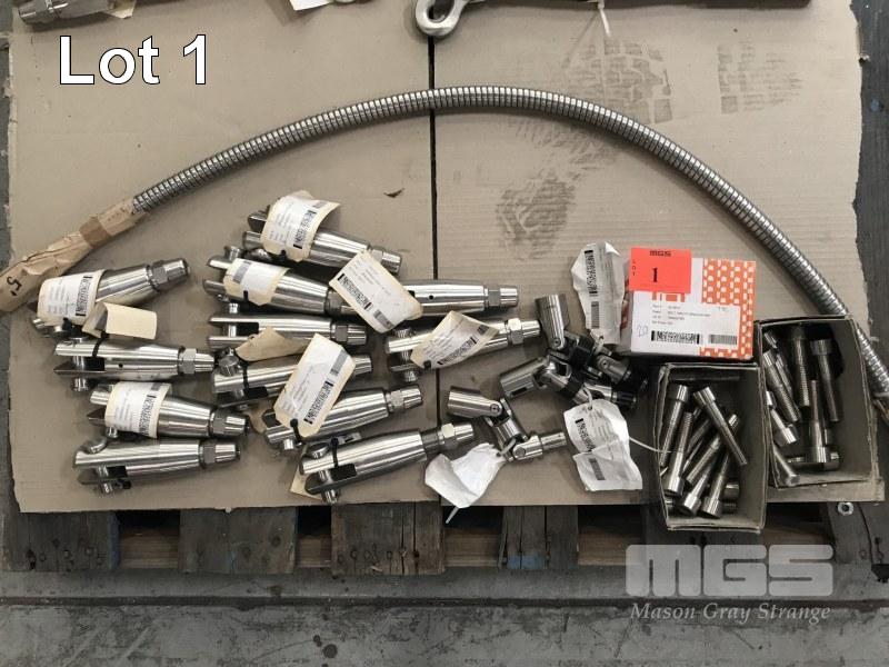 12 x S/S TERMINAL ASSEMBLIES, 5/8", 3 x S/S UNIVERSAL JOINTS & 2 x BOXES HEX BOLTS, M18