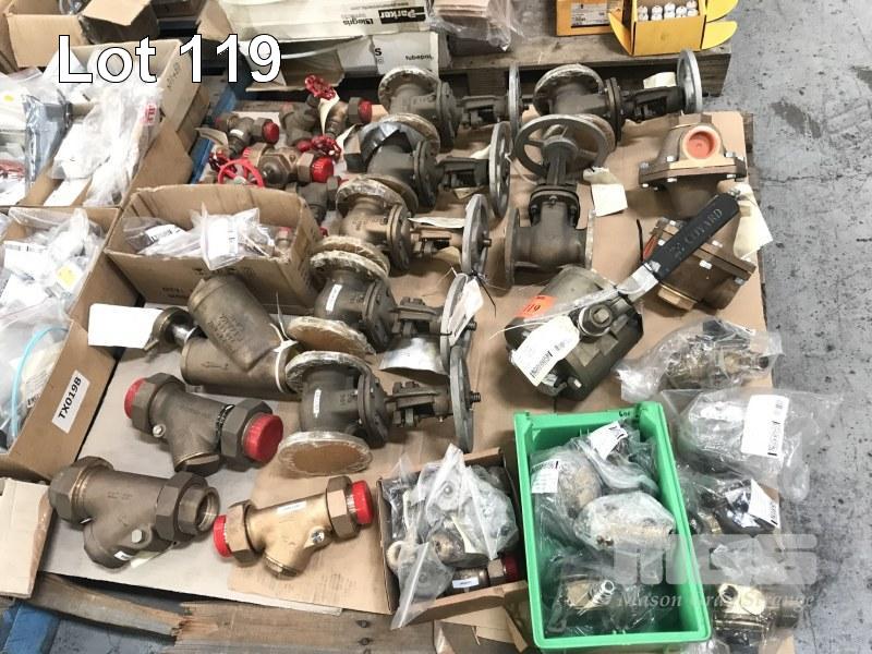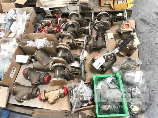 ASSORTED BRASS GATE VALVES, Y STRAINERS, AIR PRESSURE ASSEMBLIES, CONN-SWITCHES, ETC, 1 x PALLET