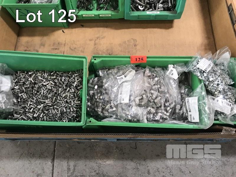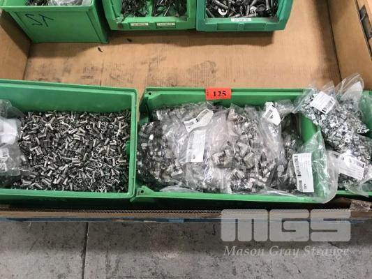 ASSORTED NUT RIVETS, HOSE ELBOWS, SWITCH GUARDS, ETC, 3 x PARTS BINS