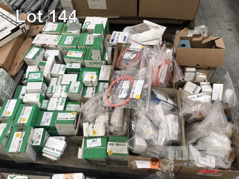 ASSORTED ELECTRICAL, BREAKERS, EARTH BAR, SWITCHES, PATCH CABLE, ETC, 1 x PALLET