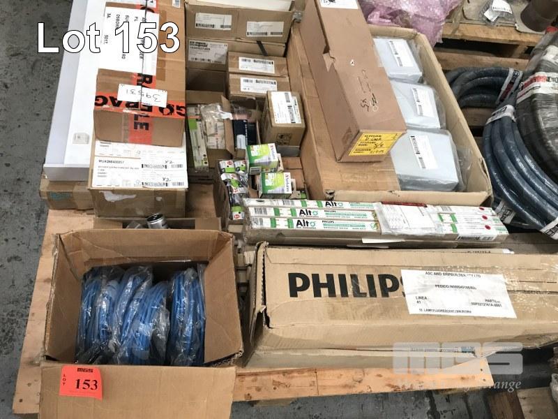 ASSORTED LIGHT GLOBES, TUBES, DATA CABLE, TERMINAL BOXES, ETC, 1 x PALLET