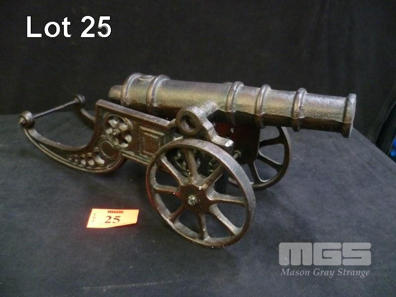 CAST IRON CANON ORNAMENT, 44cm (H)