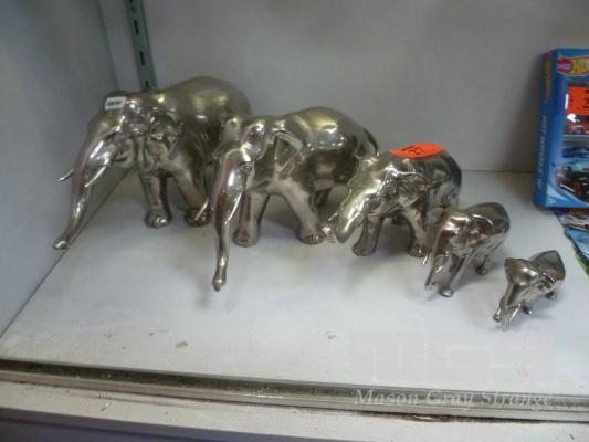 SET 5 GRADUATING BRASS ELEPHANTS, SILVER LOOK FINISH