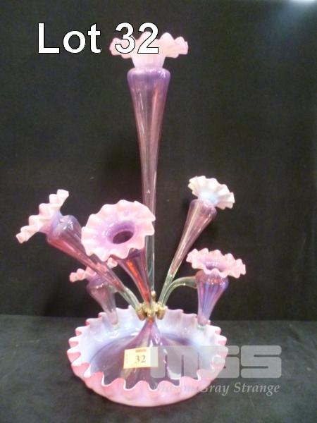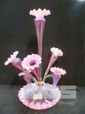 VICTORIAN ERA EPERGNE ROSE GLASS, 6 STEMS, (1 x STEM MISSING)