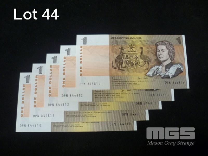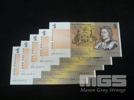 1982 5 x $1.00 NOTES CONSECUTIVE JOHNSTON STONE UNC